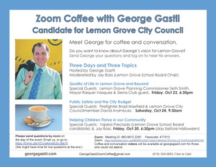 Announcing Up Coming Campaign Events for George Gastil Cynthia Jurado Spring Valley Lemon Grove Democratic Club svlgdems Related Comments are closed.