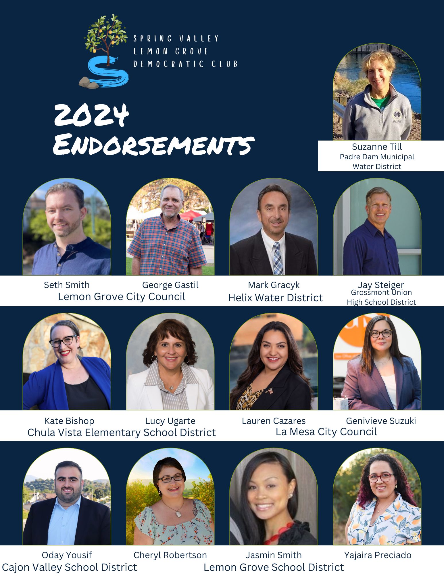 Spring Valley Lemon Grove Democratic Club has proudly endorsed the following candidates:
